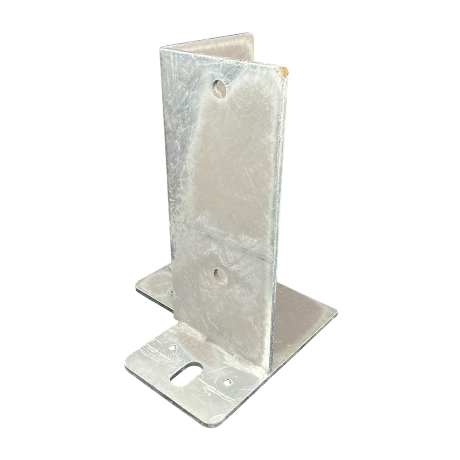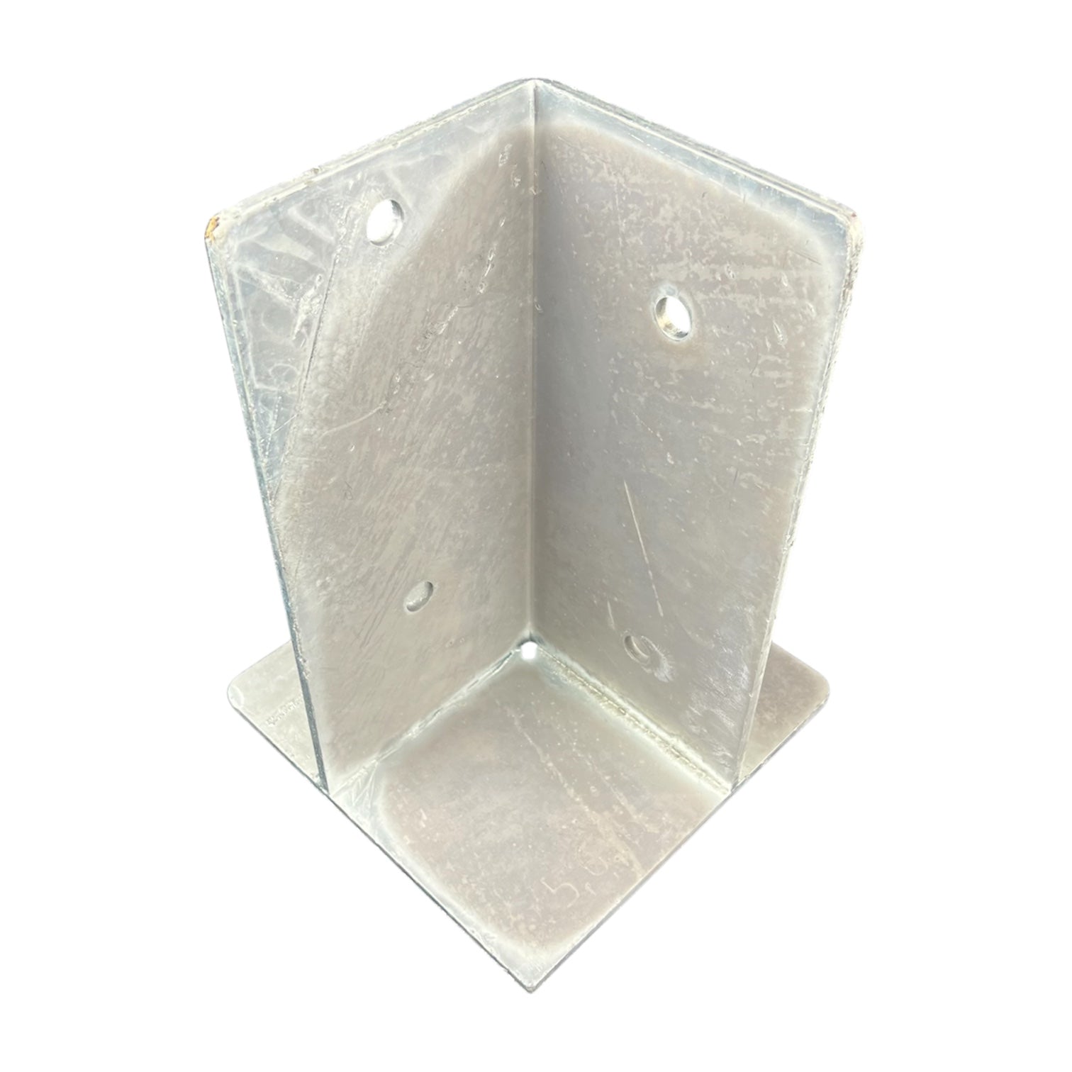 This corner bracket is DuraSet's unique solution for corner posts. This bracket provides a stronger one-piece welded connection as apposed to using two L brackets.
