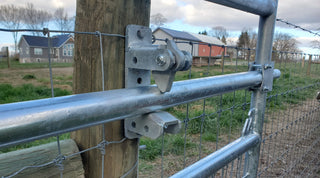 Don't let your gates swing aimlessly when they're open. From injury to livestock, unnecessary stress on your hinge post or damage to your gate and machinery from collision, there are many reasons to stow an open gate. With it's weight bearing design and super simple operation you'll want to throw away the ropes and chains. Releasing the gate is a breeze and can be done with one finger. Fastens to any wooden post with lag bolts or a concrete wall with masonry screws.